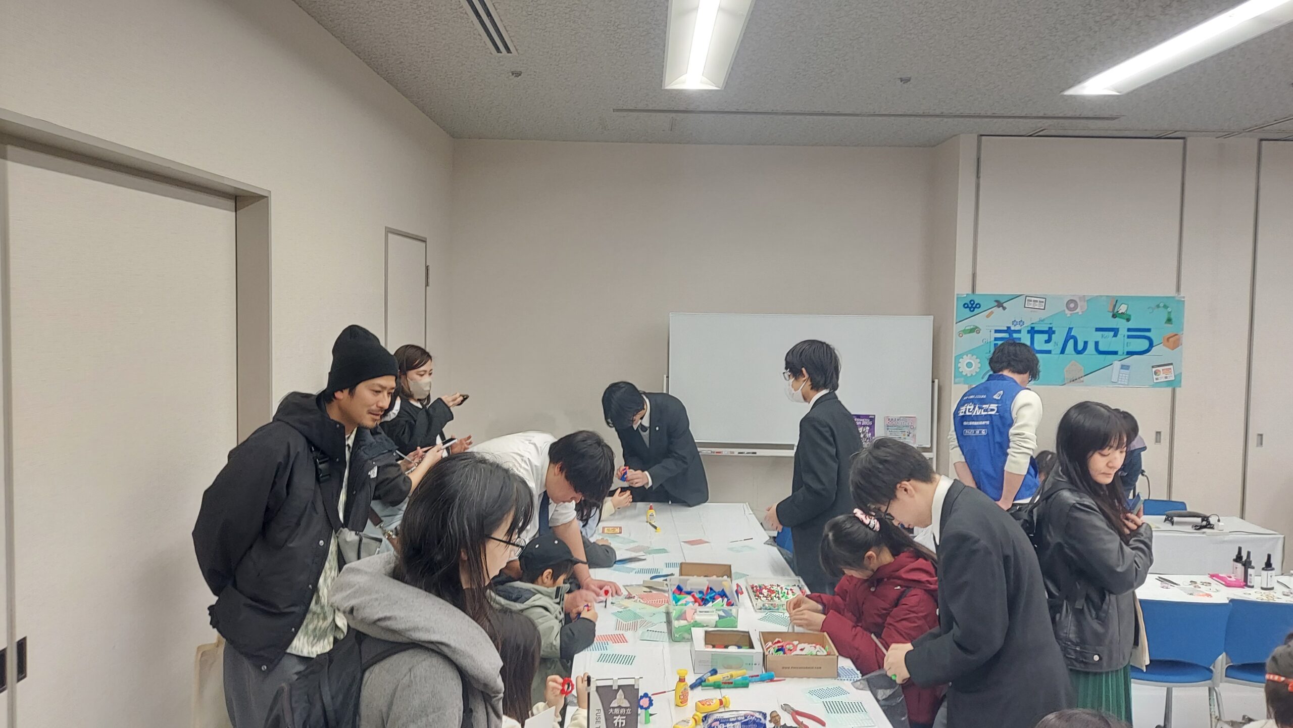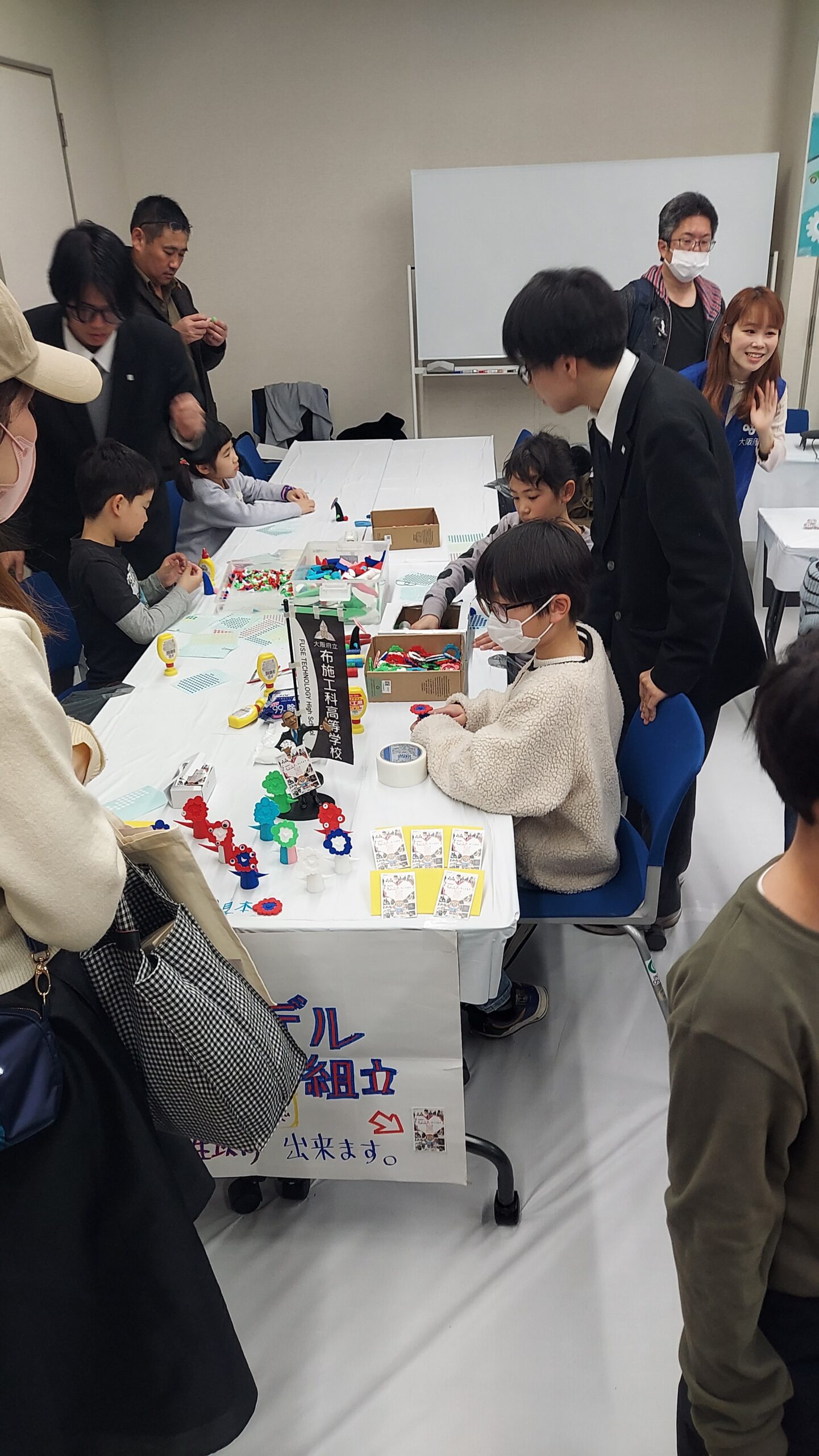 おおさかものづくりフェスタにて、本校から、ものづくりワークショップ(プラモデル組立)に参加しました。当日は、10時のスタートから満席になる大盛況で、生徒たちも熱心に子供たちに教えていました。