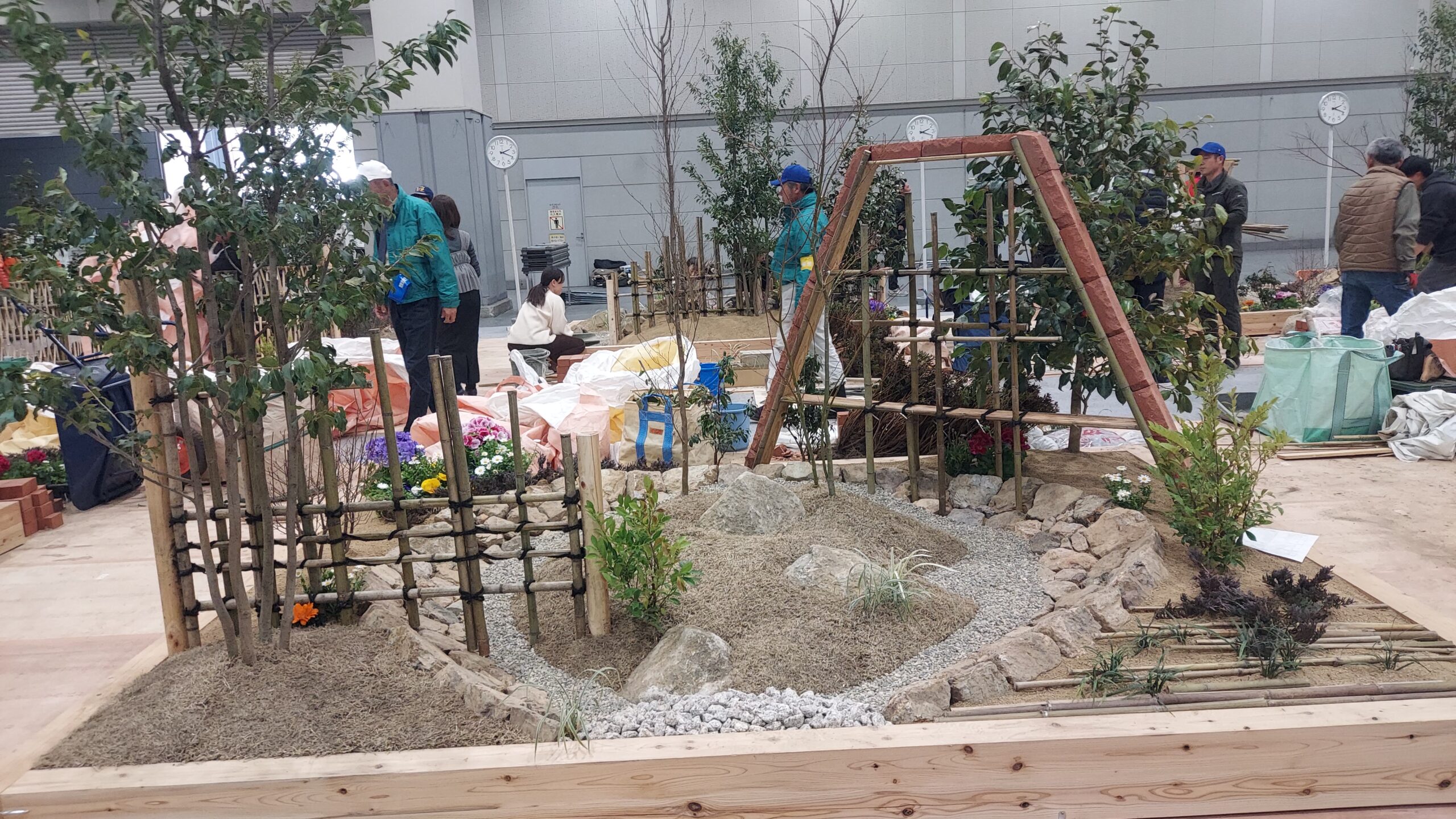 展示では、大屋根リングの模型を設置し、多くのお客様が写真を撮影しておられました。